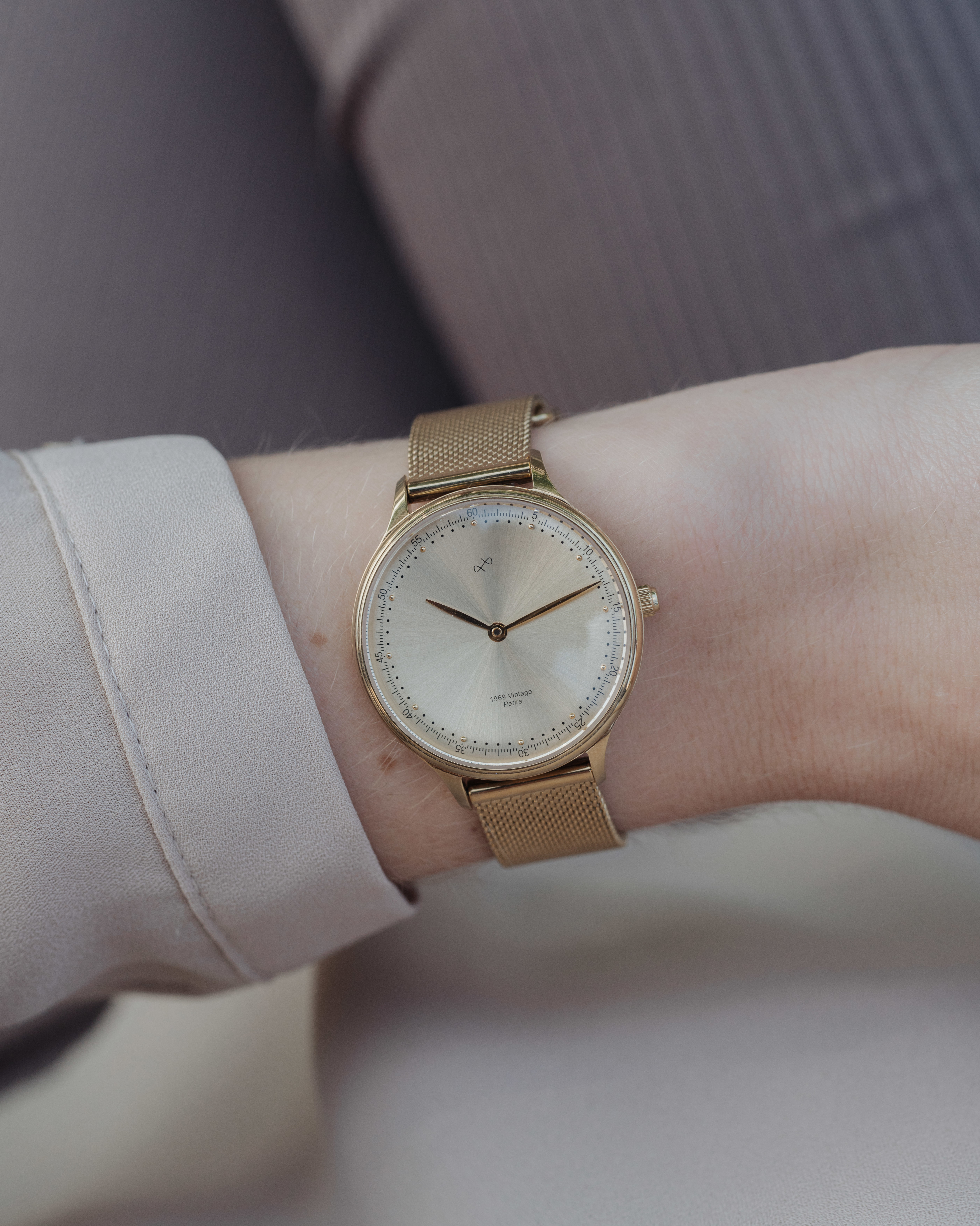 Our first unisex collection is designed around such Quartz movement, together with vintage details in form of a slightly curved dial and a super-domed glass. Combining this with a ‘humble’ dream of creating yet another historical impact, we named this timepiece 1969 Vintage.
